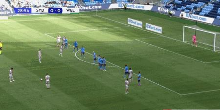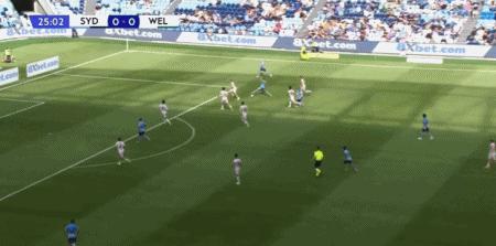 第63分鐘,魯弗助攻,艾薩克-休斯頭球破門,惠靈頓鳳凰2-0悉尼