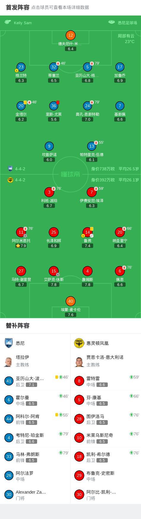 第29分鐘,阿爾米恩託任意球打在人牆身上折射入網,惠靈頓鳳凰1-0悉尼