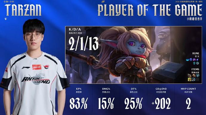本局MVP給到關鍵開到冰鳥的Tarzan!