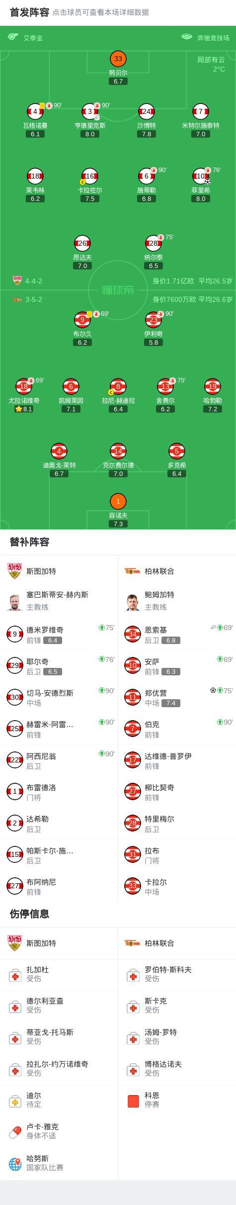 斯圖加特1-1柏林聯合,菲裏希打破僵局,鄭優營扳平比分
