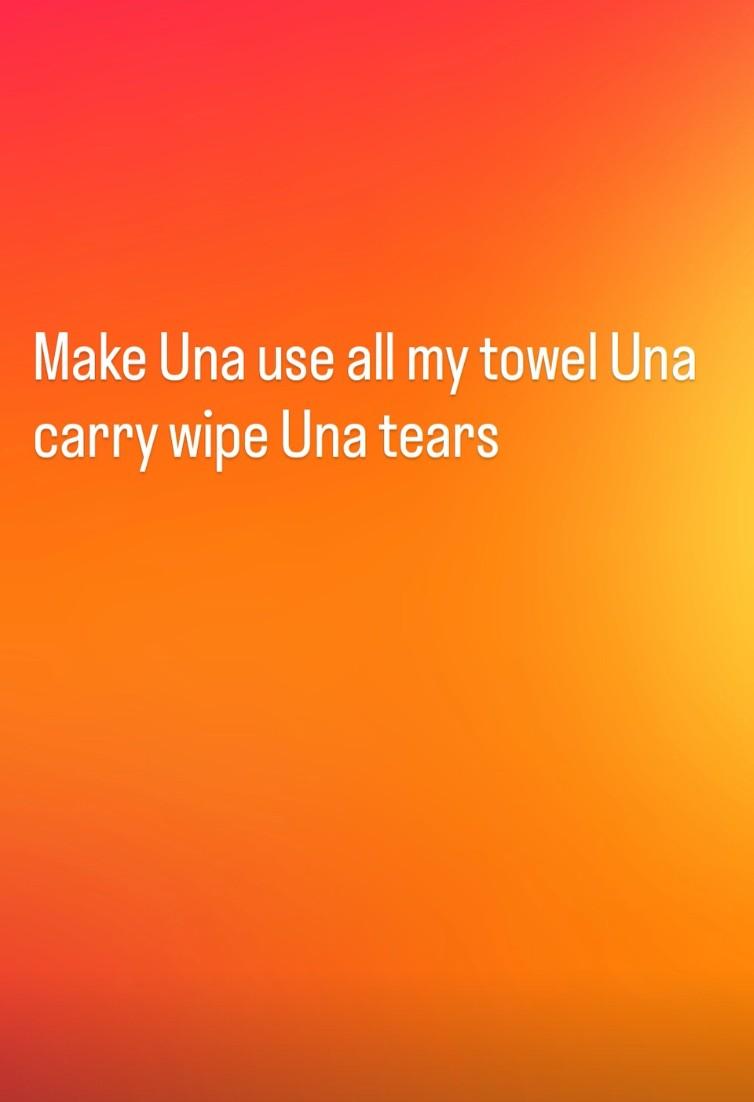 恩瓦比利在個人社交平臺發佈了一張配圖,並寫道:“Make una use all my towel, una carry wipe una tears(把我所有的毛巾都拿去,用來擦你們的眼淚吧)。”(una爲尼日利亞式英語俚語,意爲你們)
