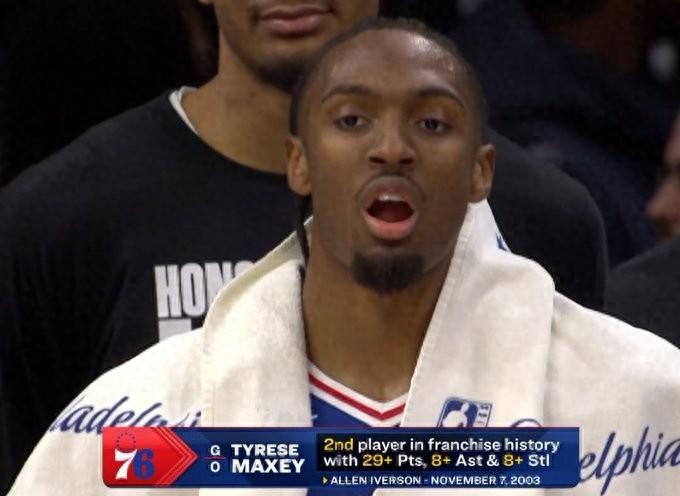 據統計,馬克西是76人隊史上第二位單場至少砍下29分8助攻8搶斷的球員,此前只有艾弗森在2003年11月7日做到過。此外,單場8搶斷也是馬克西職業生涯的搶斷數新高。