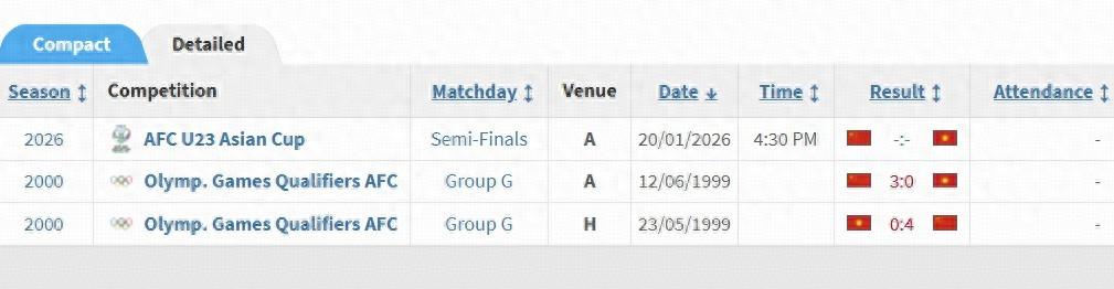 北京時間1月20日晚23:30,中國U23即將在U23亞洲盃半決賽迎戰越南U23。據德轉統計,中越兩國U23此前僅有2次交手紀錄,均發生在1999年舉行的奧運會預選賽中。