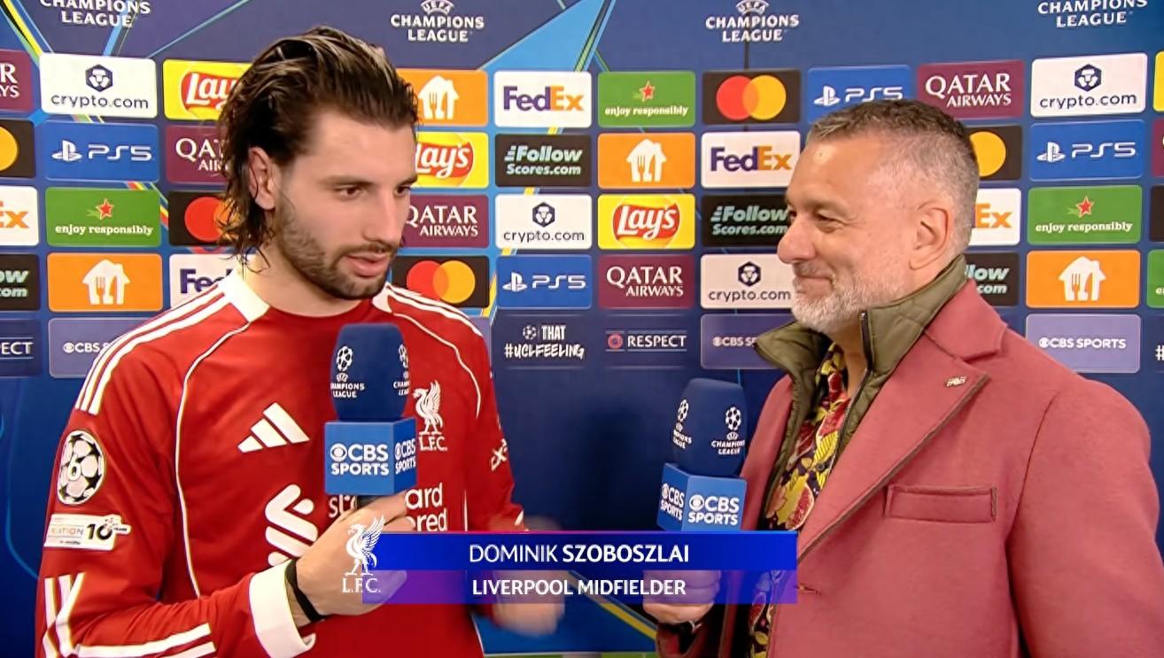 歐冠聯賽階段第7輪,利物浦客場3-0擊敗馬賽,利物浦中場索博斯洛伊賽後接受了CBS體育的採訪。