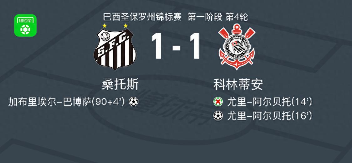 巴西聖保羅州錦標賽第一階段第四輪,桑托斯與科林蒂安展開較量。科林蒂安球員尤里-阿爾貝託主罰點球未能命中,隨後攻入一球;桑托斯球員加布裏埃爾-巴博薩在比賽尾聲階段破門。雙方最終以1比1戰平。