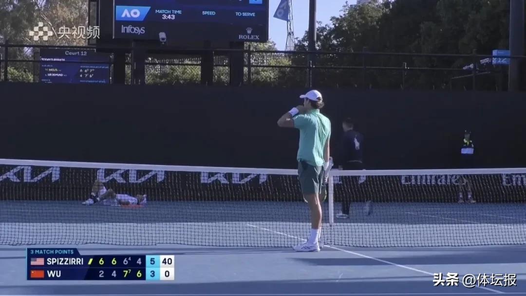 吳易昺在第三盤發力猛追率先破發,取得3:1領先,斯皮齊裏回破並保發,將比分扳成3:3平,隨後雙方連續保發,比分持續至6:6平進入搶七。搶七對決中,吳易昺先丟兩球隨後連得4分佔據優勢,在被對手追平之後,連下三球,以7:4拿下搶七。