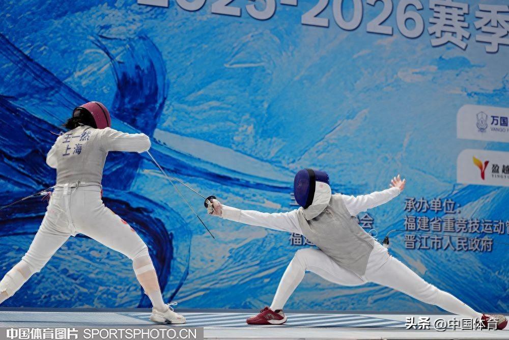 中國體育訊 1月24日,2025-2026賽季全國擊劍冠軍賽分站賽(花劍第二站)在福建省晉江市第二體育中心體育館舉行。在首日女子花劍青年組的比賽中,福建選手沈櫟瑩戰勝上海選手王一然獲得冠軍。(中國體育圖片 倪敏哲 攝)