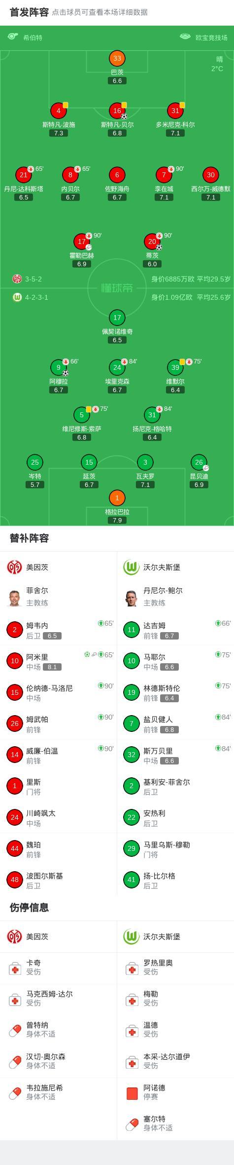 美因茨3-1逆轉沃爾夫斯堡,阿米里點射、斯特凡-貝爾破門