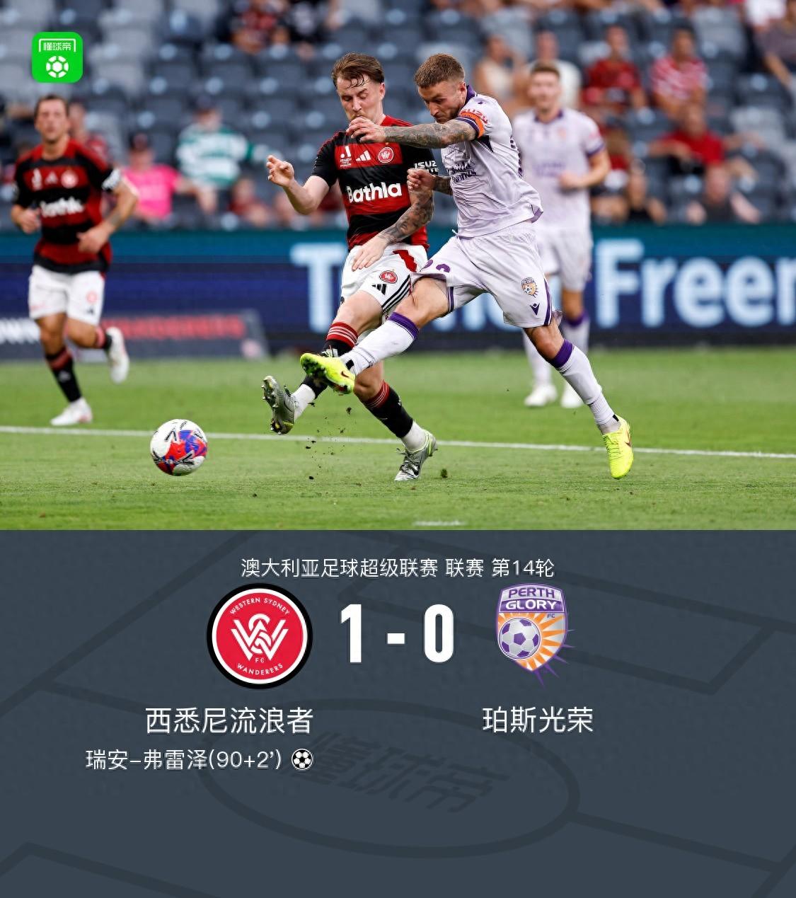 北京時間1月25日,澳大利亞足球超級聯賽第14輪,西悉尼流浪者主場迎戰珀斯光榮。比賽中,瑞安-弗雷澤破門得分。最終,西悉尼流浪者以1-0戰勝珀斯光榮。