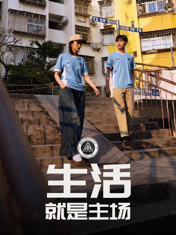 深圳新鵬城2026賽季主場球衣:天藍色爲主色調,搭配立體紋理
