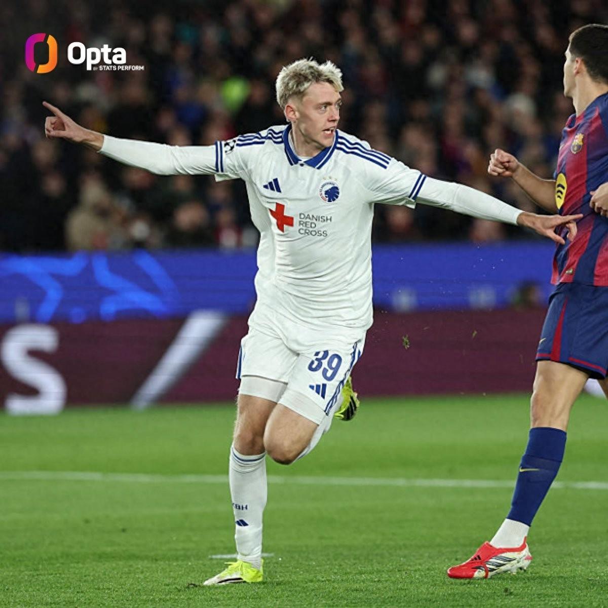 此役客場對陣巴塞羅那,17歲212天的哥本哈根前鋒維克托-達達松在比賽第4分鐘破門。