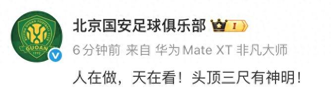 在公佈這一處罰後,北京國安發佈官博回應:“人在做,天在看!頭頂三尺有神明!”