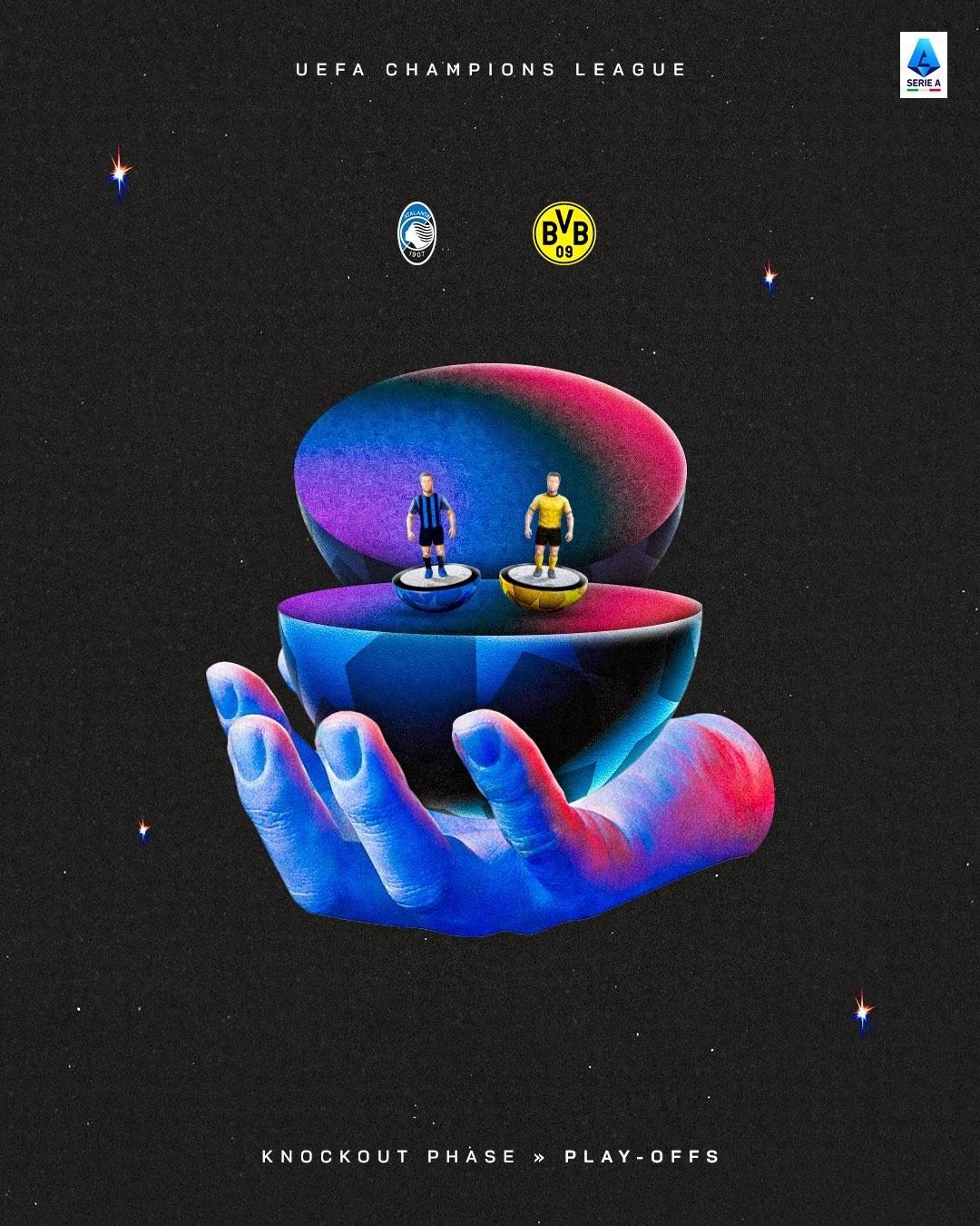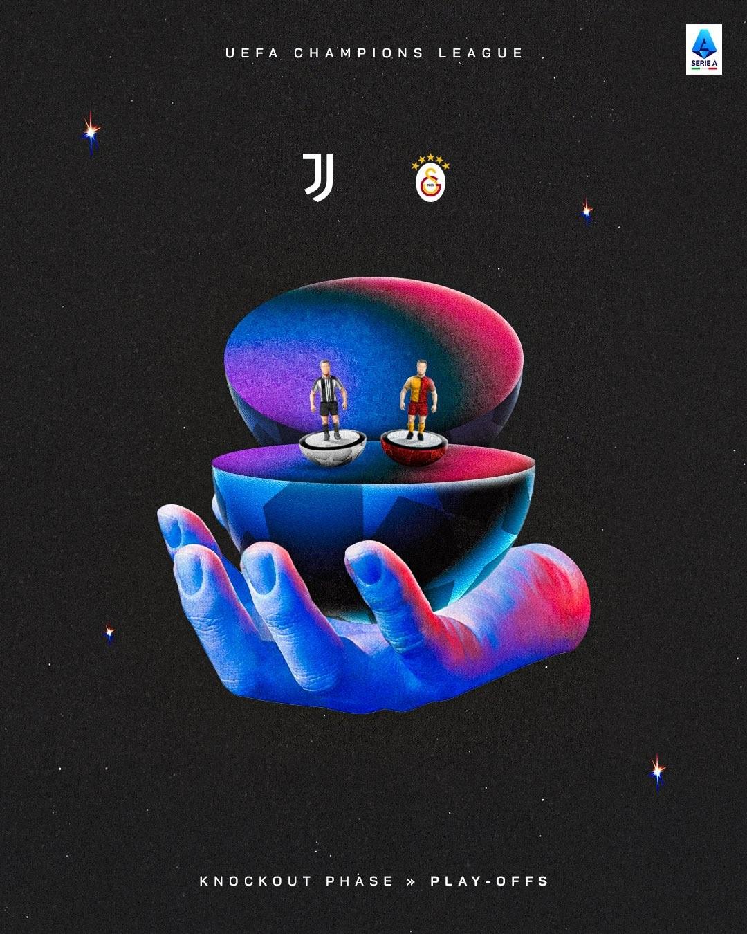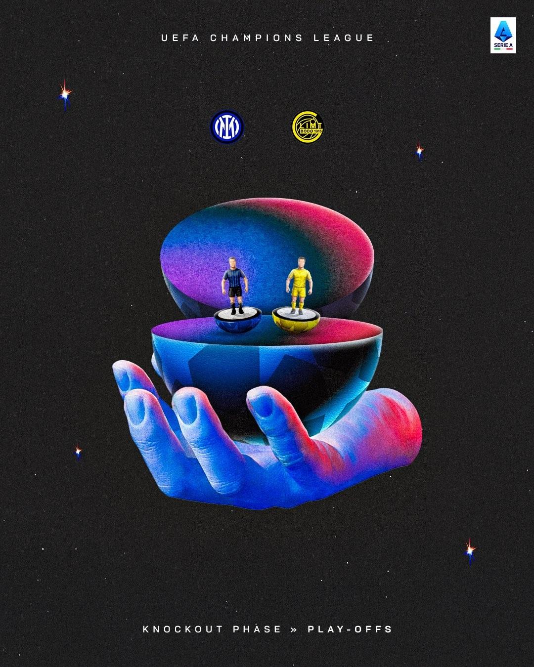 歐冠淘汰賽附加賽抽籤結束,意甲三支球隊籤運出爐,國際米蘭遇到博德閃耀,尤文圖斯遇到加拉塔薩雷,亞特蘭大遇到多特蒙德,三支球隊均將作爲種子隊先客後主。