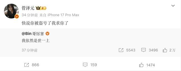 管澤元轉發這條微博並配文:“快說你被盜號了我求你了”。