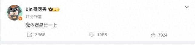北京時間2月6日,LPL電競春晚落下帷幕,BLG遭到AL讓一追二,以登峯組第二的身份結束了組內賽的爭奪。本場比賽結束後,BLG上單Bin選手更新了微博,內容是:“我依然是世一上。”