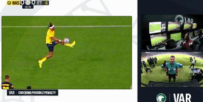 第14分鐘,西馬坎禁區內疑似手球,裁判示意沒有問題