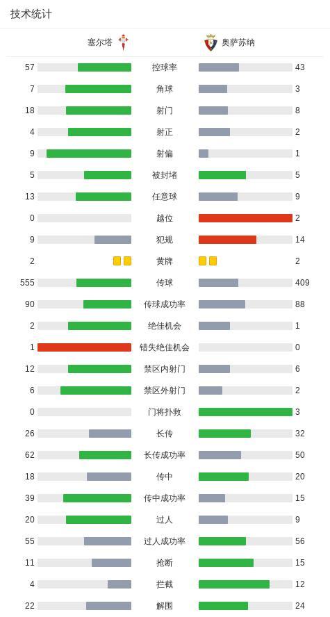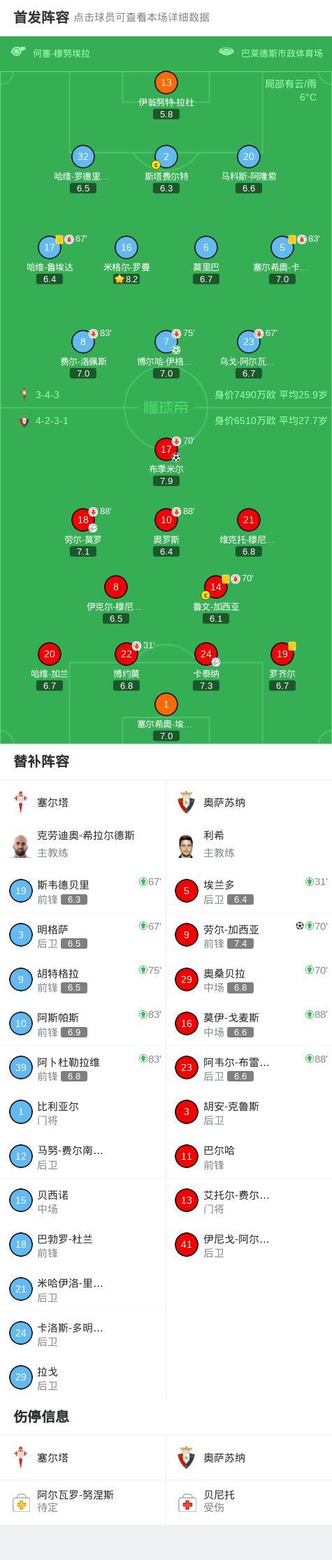 北京時間2月7日西班牙足球甲級聯賽 聯賽 第23輪,塞爾塔主場對陣奧薩蘇納。塞爾塔博爾哈-伊格萊西亞斯破門。奧薩蘇納布季米爾破門,勞爾-加西亞破門。最終比分塞爾塔 1-2 奧薩蘇納。