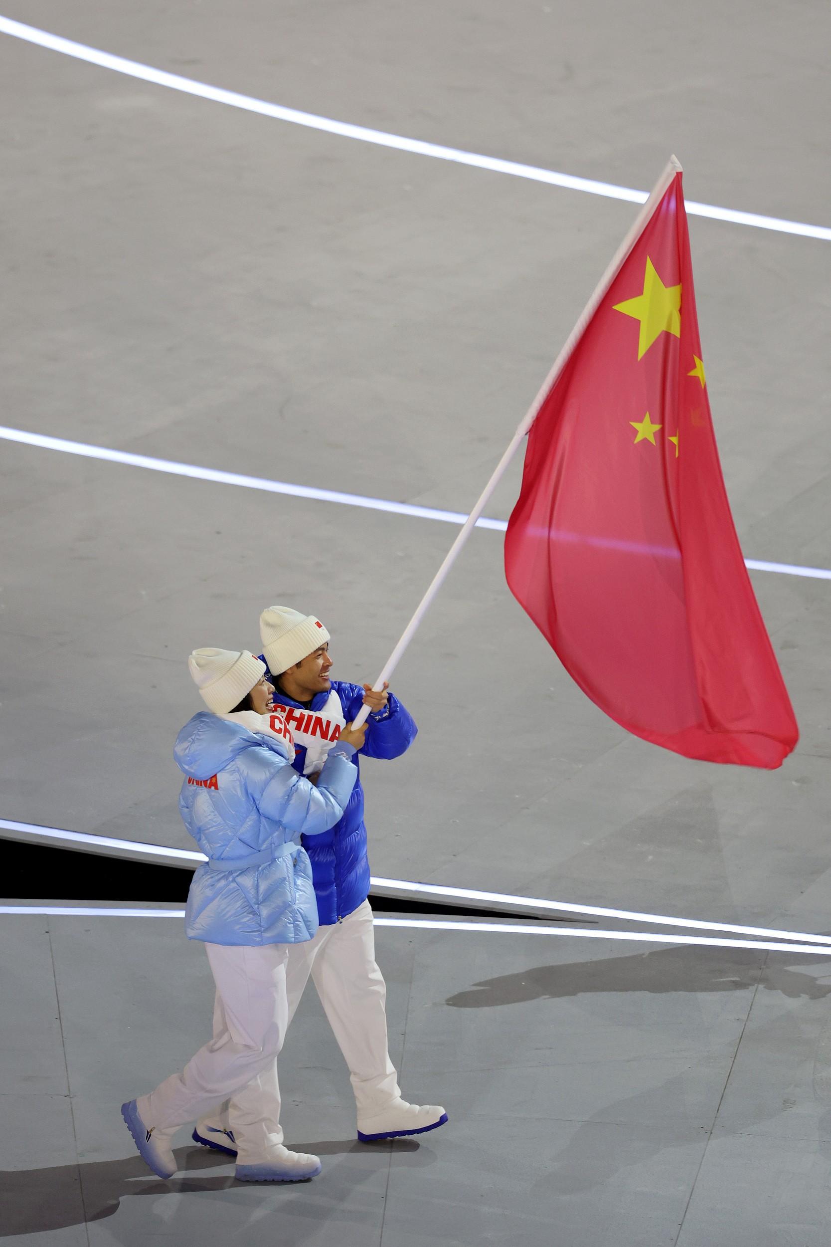 中國體育代表團入場,寧忠巖、張楚桐擔任旗手。