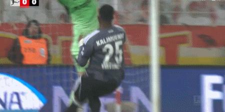 第41分鐘,凱姆萊因外圍抽射,桑托斯單掌將球托出橫樑