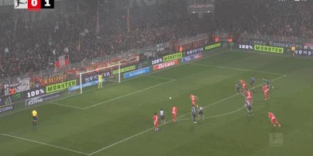 第87分鐘,克爾費爾德主罰點球命中,柏林聯合1-1法蘭克福