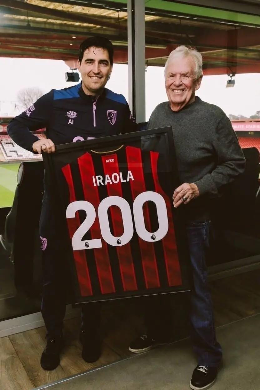 執教100場英超里程碑,伯恩茅斯主席爲伊勞拉送上紀念球衣
