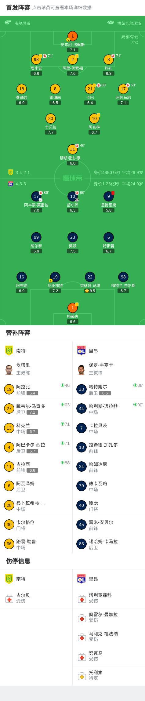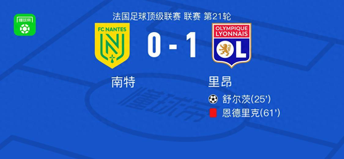 北京時間2月8日法國足球頂級聯賽 聯賽 第21輪,南特主場對陣里昂。里昂舒爾茨破門。最終比分南特 0-1 里昂。