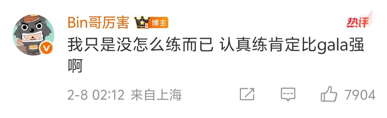Bin哥還在評論區表示:“我只是沒怎麼練而已,認真練肯定比Gala強的。”
