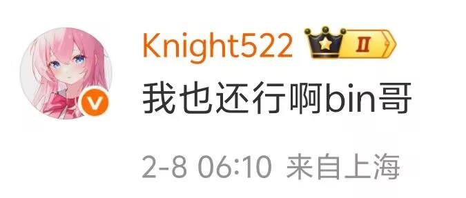 他的隊友Knight在評論區說:“我也還行啊bin哥。”