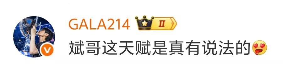 而被Bin用來對比的當事人Gala則說:“斌哥這天賦是真有說法的。”