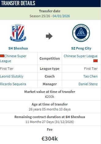 德轉顯示,上海申花中場戴偉浚加盟深圳新鵬城的轉會費約210萬人民幣。