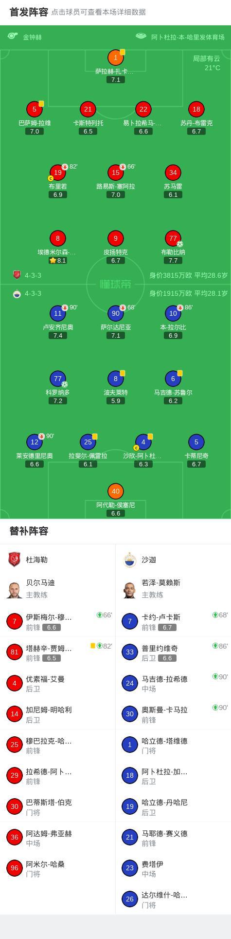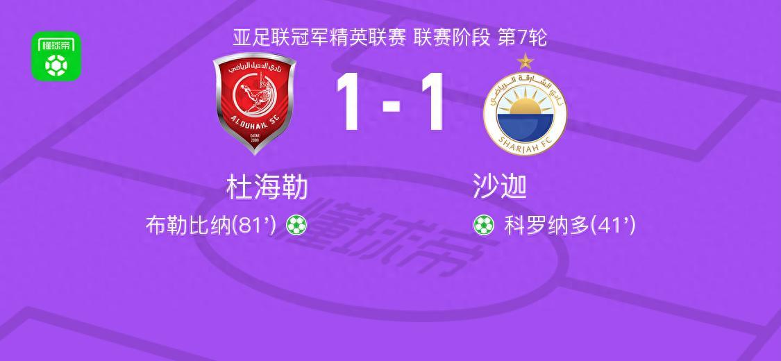 北京時間2月10日亞足聯冠軍精英聯賽 聯賽階段 第7輪,杜海勒對陣沙迦。杜海勒布勒比納破門。沙迦科羅納多破門。最終比分杜海勒 1-1 沙迦。