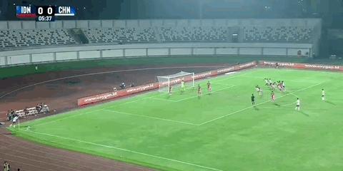 第22分鐘,印尼U17利用前場任意球,射門發生折射彈入球門,印尼1-1扳平比分