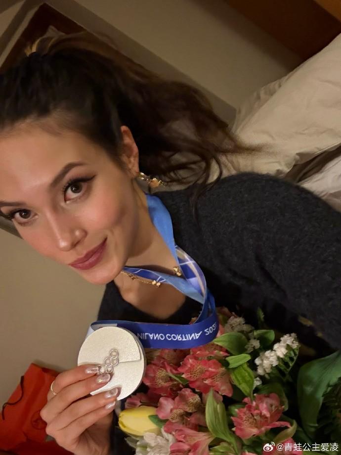 2月11日,谷愛凌更新社媒曬米蘭冬奧會獎牌,配文:感謝所有支持我的朋友們!