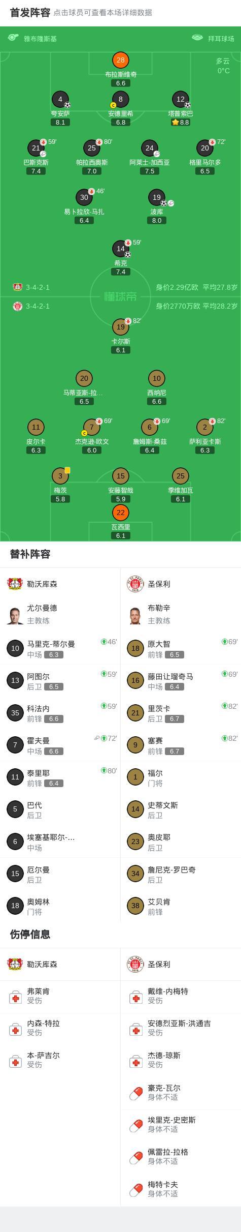 北京時間2月14日德國足球頂級聯賽 第22輪,勒沃庫森主場對陣聖保利。勒沃庫森誇安薩頭球打在門將身上彈入球門,1分鐘後希克頭球再下一城,下半場塔普索巴角球中頭球破門,第78分鐘波庫破門,上演一傳一射。最終比分勒沃庫森 4-0 聖保利。