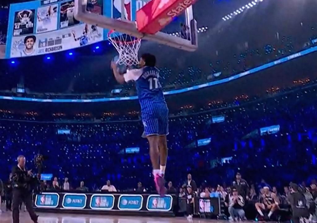 第二位登場的是魔術新秀傑斯-理查德森,他奉獻一記摺疊背扣,得到45.4分。