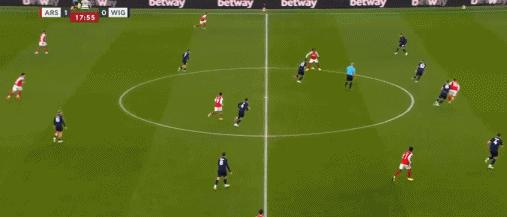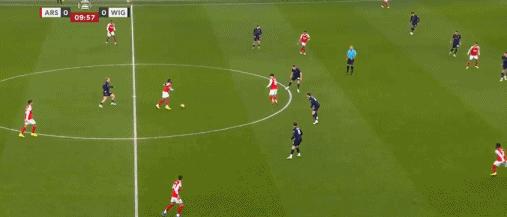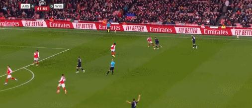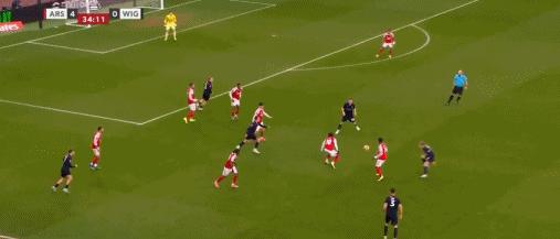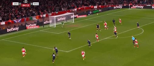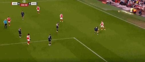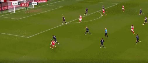 第23分鐘,熱蘇斯搶點,亨特門前自擺烏龍,阿森納3-0維岡競技