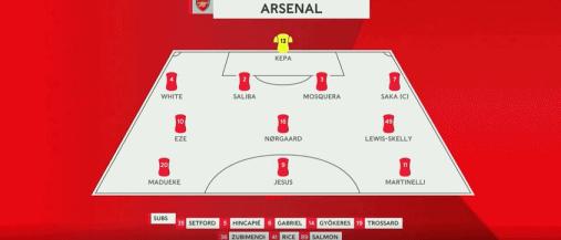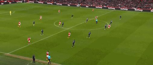 薩卡頂替受傷的卡拉菲奧裏首發,轉播陣型顯示位置爲左後衛