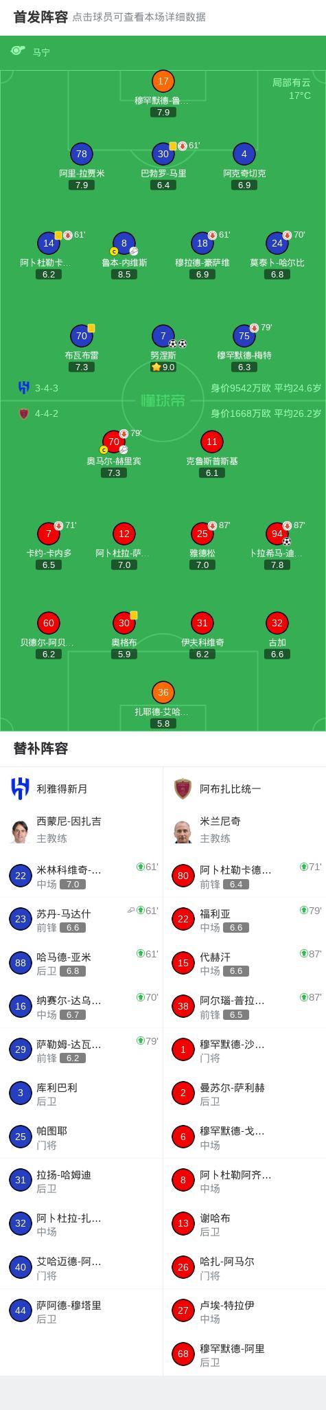 北京時間2月17日亞足聯冠軍精英聯賽 聯賽階段 第8輪,利雅得新月對陣阿布扎比統一。利雅得新月努涅斯梅開二度。阿布扎比統一卜拉希馬-迪亞拉破門。最終比分利雅得新月 2-1 阿布扎比統一。