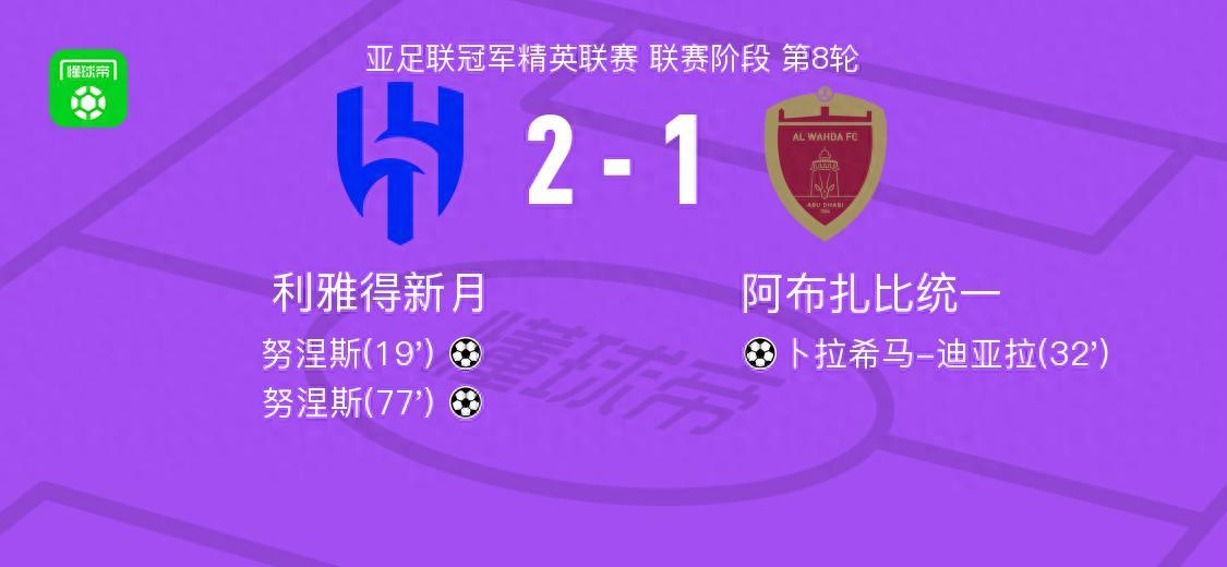 利雅得新月2-1阿布扎比統一,努涅斯包辦2球