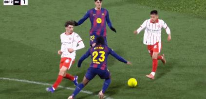 第18分鐘,奧爾莫妙傳,亞馬爾突入禁區打門被撲