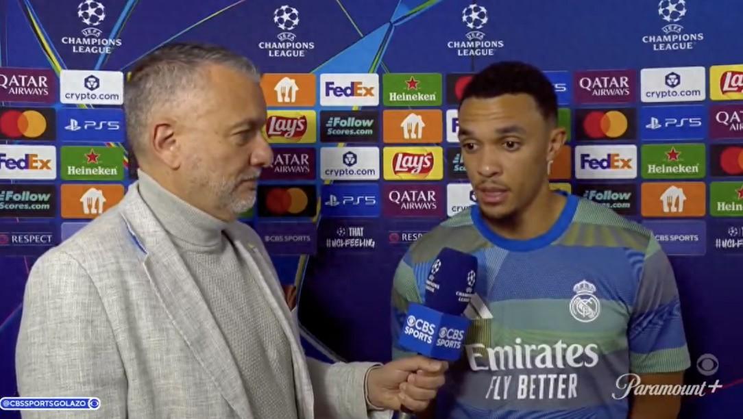 歐冠淘汰賽附加賽首回合,皇馬客場1-0戰勝本菲卡,阿諾德賽後接受了CBS體育的採訪。
