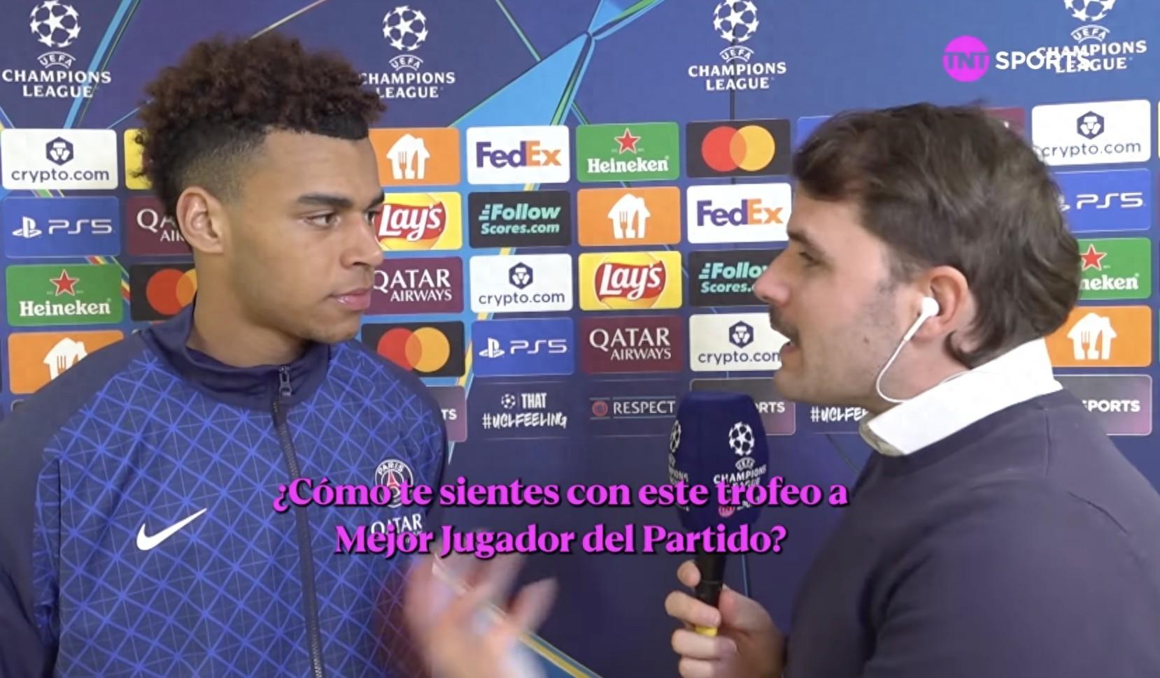 歐冠淘汰賽附加賽首回合,巴黎客場3-2戰勝摩納哥,本場比賽打入2粒進球的杜埃賽後接受了TNT體育墨西哥頻道的採訪。