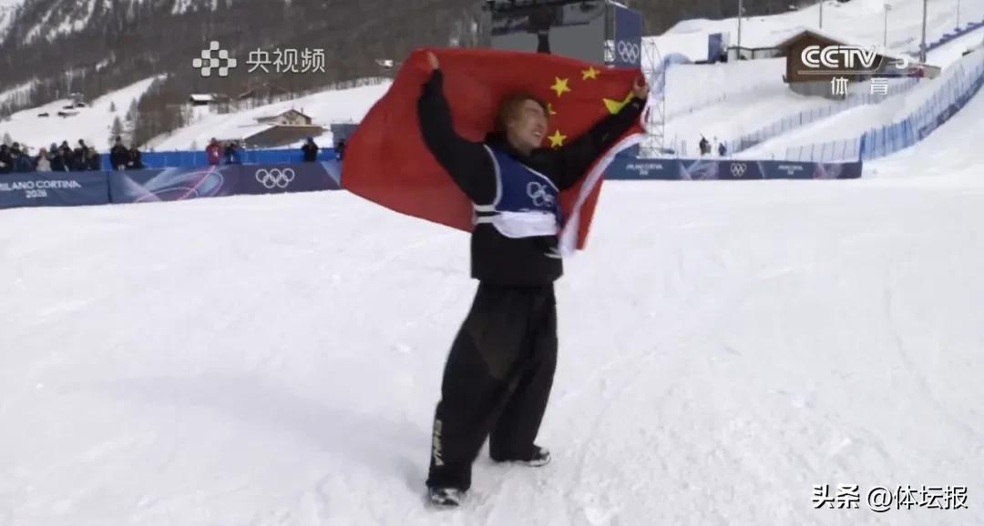 冠軍蘇翊鳴身披國旗慶祝