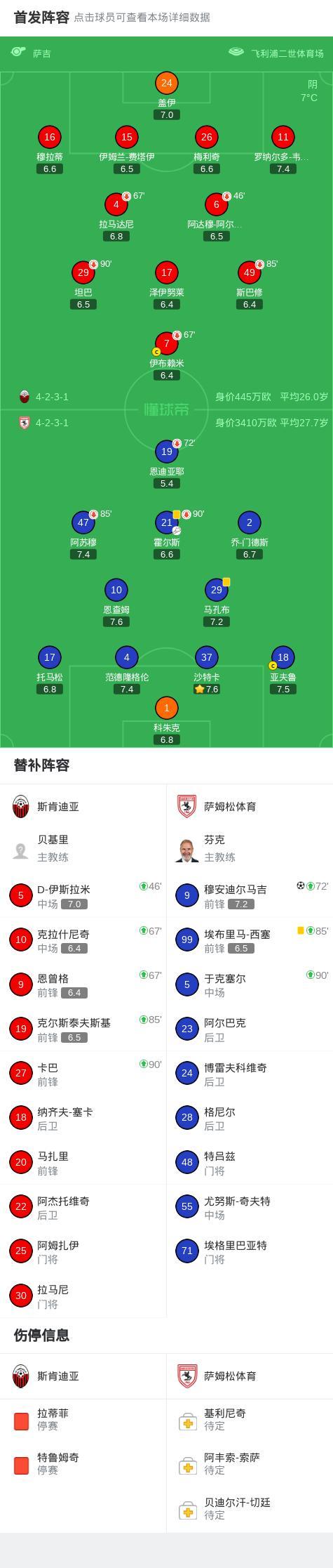 第77分鐘,薩姆松體育球員霍爾斯助攻穆安迪爾馬吉打入一球。