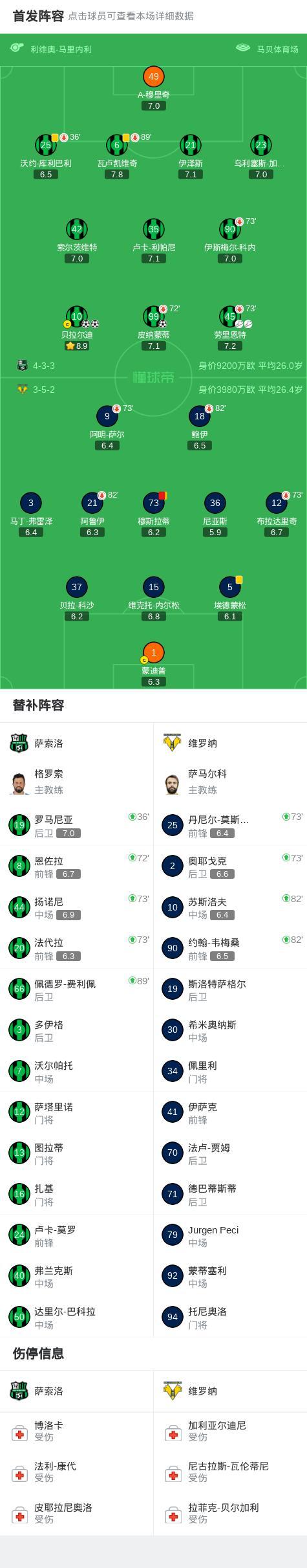 第62分鐘,薩索洛球員勞裏恩特助攻貝拉爾迪打入一球。