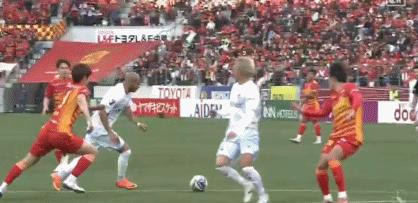 第90+4分鐘,淺野雄也抓住對方解圍失誤破門,名古屋鯨魚1-2扳回一城!