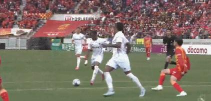 第22分鐘,名古屋鯨魚反擊,山岸祐也突入禁區打門被封堵