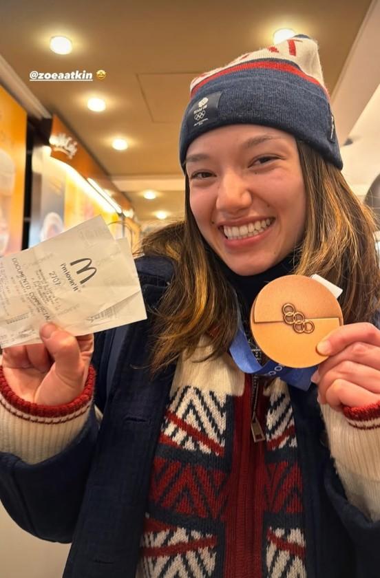 佐伊-阿特金在冬奧會滑雪女子U型場地技巧比賽中獲得第三名,位列李芳慧和谷愛凌之後。中國選手包攬金、銀牌,英國選手獲得銅牌。