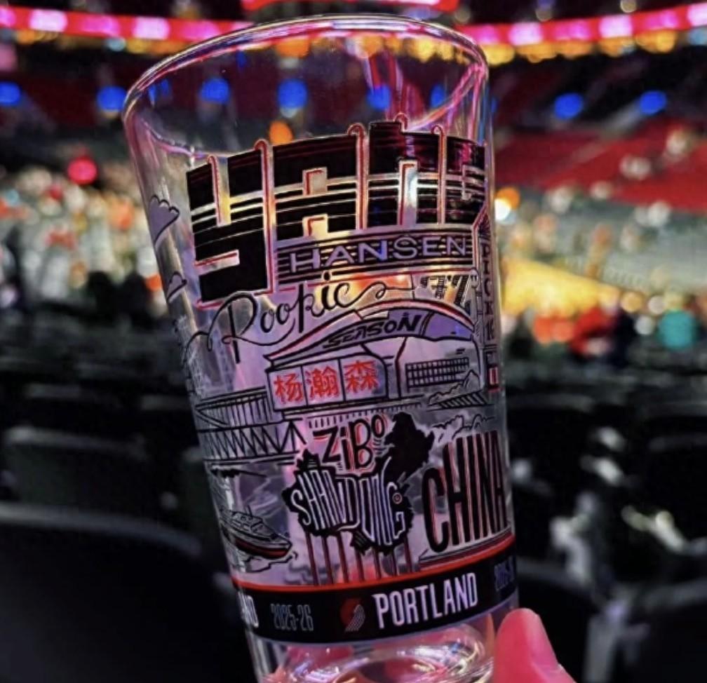 北京時間2月25日,開拓者在主場對陣森林狼的比賽中,向前5000名入場觀衆免費發放印有楊瀚森形象的紀念玻璃杯,但紀念杯上的中國地圖缺少海南、臺灣和藏南地區。