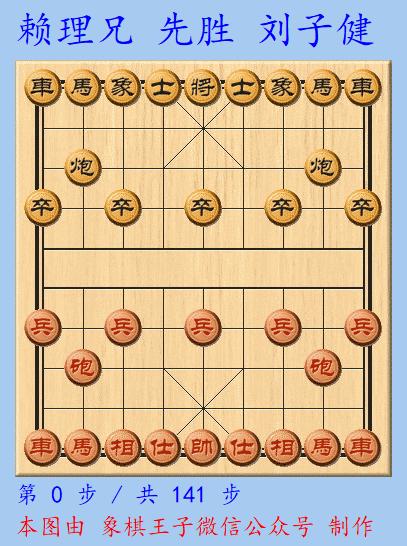 賴理兄執紅棋在中局猛攻裏,先破黑象,而後掃黑卒,紅憑藉車馬炮過河兵仕相全攻打黑車雙炮單缺象防線,黑不敵,賴理兄141手勝出,奪得3分。